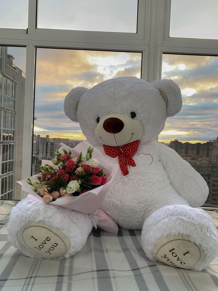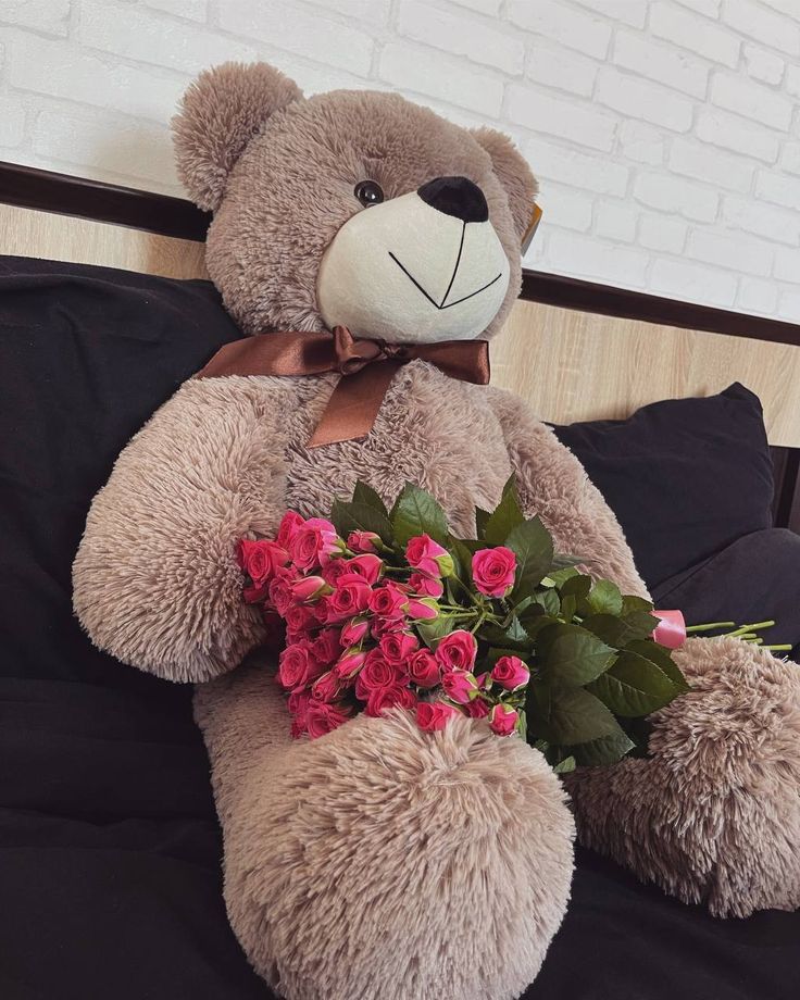 Express your love and affection with this adorable teddy bear paired with a beautiful bouquet of fresh, vibrant flowers. The plush teddy bear, soft and cuddly, is the ideal companion for comforting hugs, while the colourful flowers add a touch of elegance and natural beauty. A perfect way to show you care!